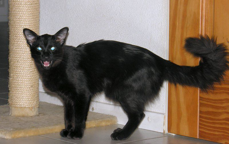 Буревестник - это худой костистый кот. Окрас черный. Под шерстью пробегают бугры сухих мышц. Он был бы действительно красив собой, если бы не костлявость и сильная худоба. Тонкие печальные черты его морды обрамляет пушистый загривок. Грудь, живот, уши, нижняя часть хвоста и лапы имеют более яркий выраженный цвет, вся остальная шерсть более темного оттенка. Уши тонкие, резко подняты вверх и имею скос, украшены двумя кисточками. Нос темно-розовый, усы и брови угольно-чёрного цвета. Прикус правильный, но клыки немного выдаются вперед, совсем немного обнажаясь, особенно это видно, когда кот скалится. Глаза ярко-голубые, большие и пристальные, льдинистые. Взгляд ехидный и неприятный. В его облике есть что-то жестокое и пугающее. Хвост пушистый и гибкий, настоящее украшение для своего владельца. Благодаря своему небольшому весу легко разгоняется и стремительно атакует. Хорош на короткие дистанции. Лапы изящные и тонкие, позволяют делать огромные скачки, скользить по земле легко и быстро, словно змея. Гордо расправленные плечи, прямая осанка и лёгкие гармоничные движения отождествляют Буревестника с незаметной тенью. Концы ушей чуть заострены, сами уши подняты вверх, вдобавок обрамлены аккуратными кисточками. Пышные угольного цвета усы щедро разбросаны в разные стороны, что придаёт его натуре некоторый шарм. Шерсть роскошная, густая, полу-длинная, способная защитить владельца от суровых морозов. Тело изящное, движения грациозны. Походка легкая и непринужденная. Подушечки на лапах черные, без единого светлого пятнышка